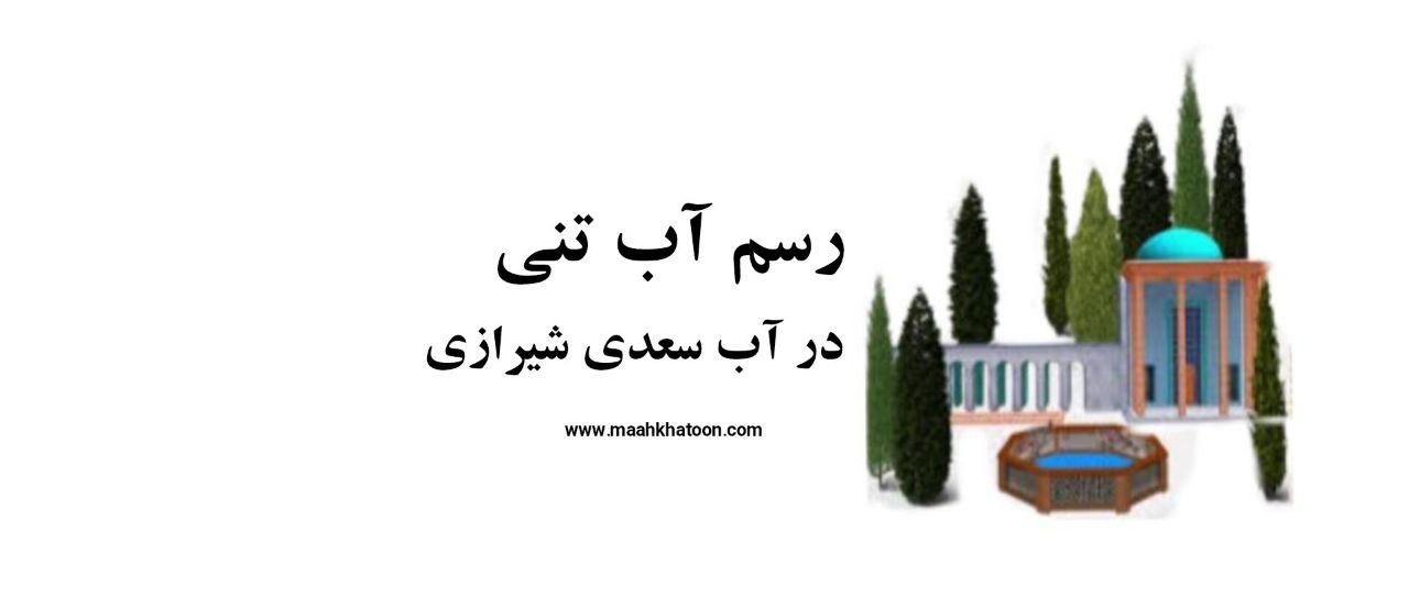 رسم آب تنی در شیراز و بازگشایی بخت دختران و پسران از زیر کوه سعدی در شیراز، ، چشمه ای آب بیرون می آید که قدمت زیادی دارد. و این آب توسط چاه ها و قنات ها به سمت محله ای به همین نام میرسد. در محله سعدی که در بالای آرامگاه سعدی واقع شده است. چند چاه برای استفاده ساکنان از این آب از زمانهای قبل حفر شده بوده است. حوض ماهی آرامگاه سعدی ، همسطح زمین و و مظهر قنات و چشمه است.